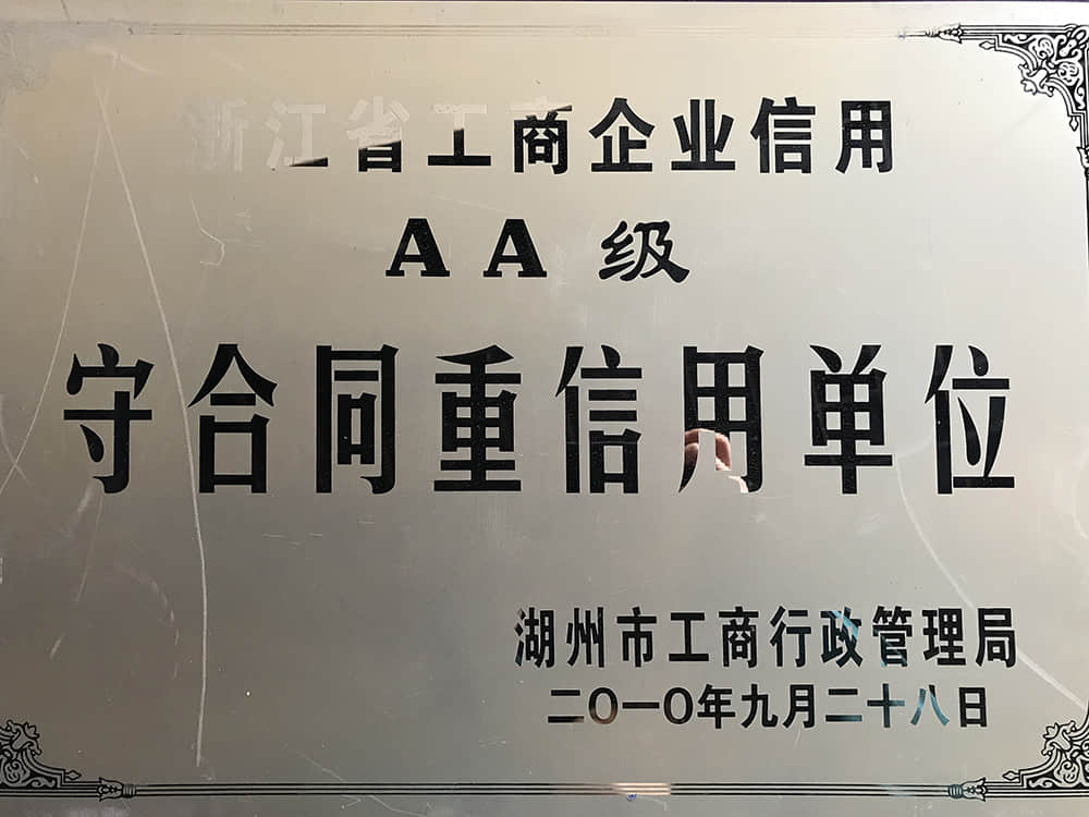 2010浙江省工商企業(yè)信用AA級(jí)守合同重信用單位