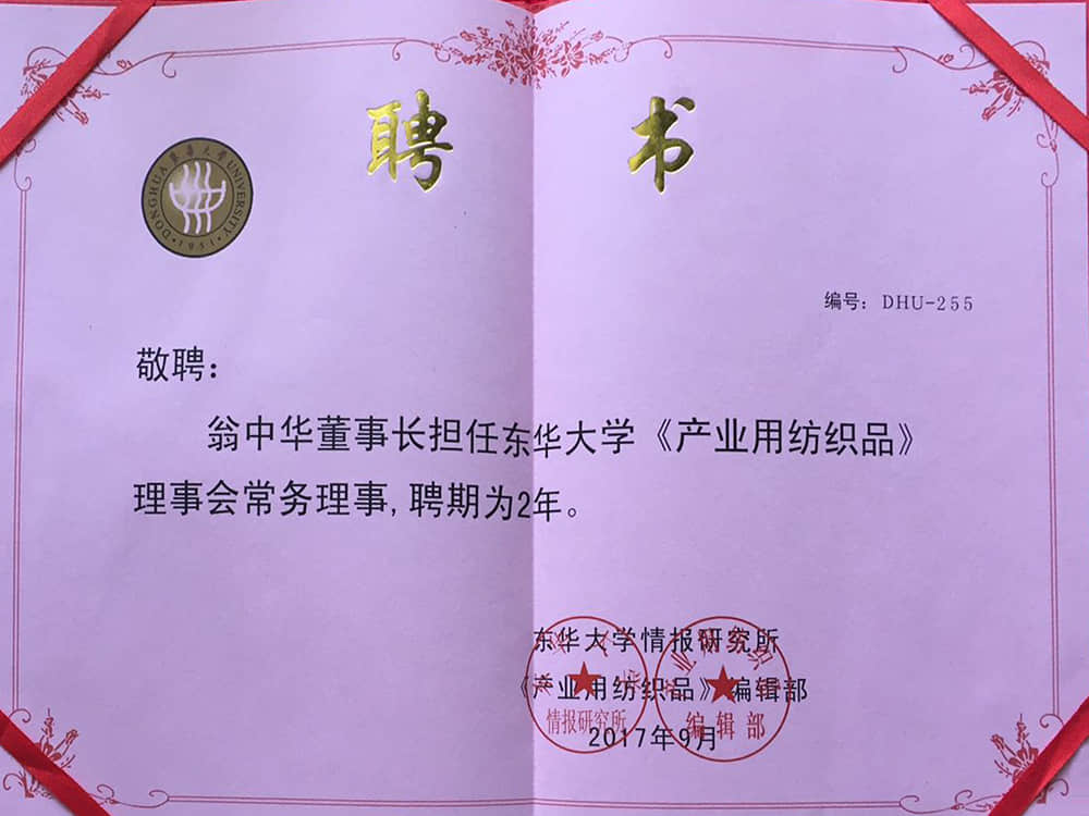2017東華大學(xué)產(chǎn)業(yè)用紡織品理事會(huì)常務(wù)理事單位